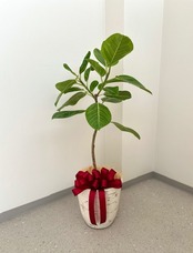 丸く艶やかな葉が愛らしいゴムの木です。どんなインテリアにも馴染みやすく、比較的育てやすいので大変喜ばれます。