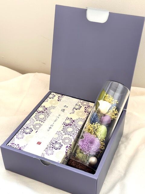 故人を偲ぶ気持ちを込めた、線香とプリザーブドフラワーのセットです。水やり不要で美しさを保つお供え花は、仏壇や遺影のそばに最適。心安らぐ「ラベンダーの香り」の線香と共に、大切な方への想いを届けます。