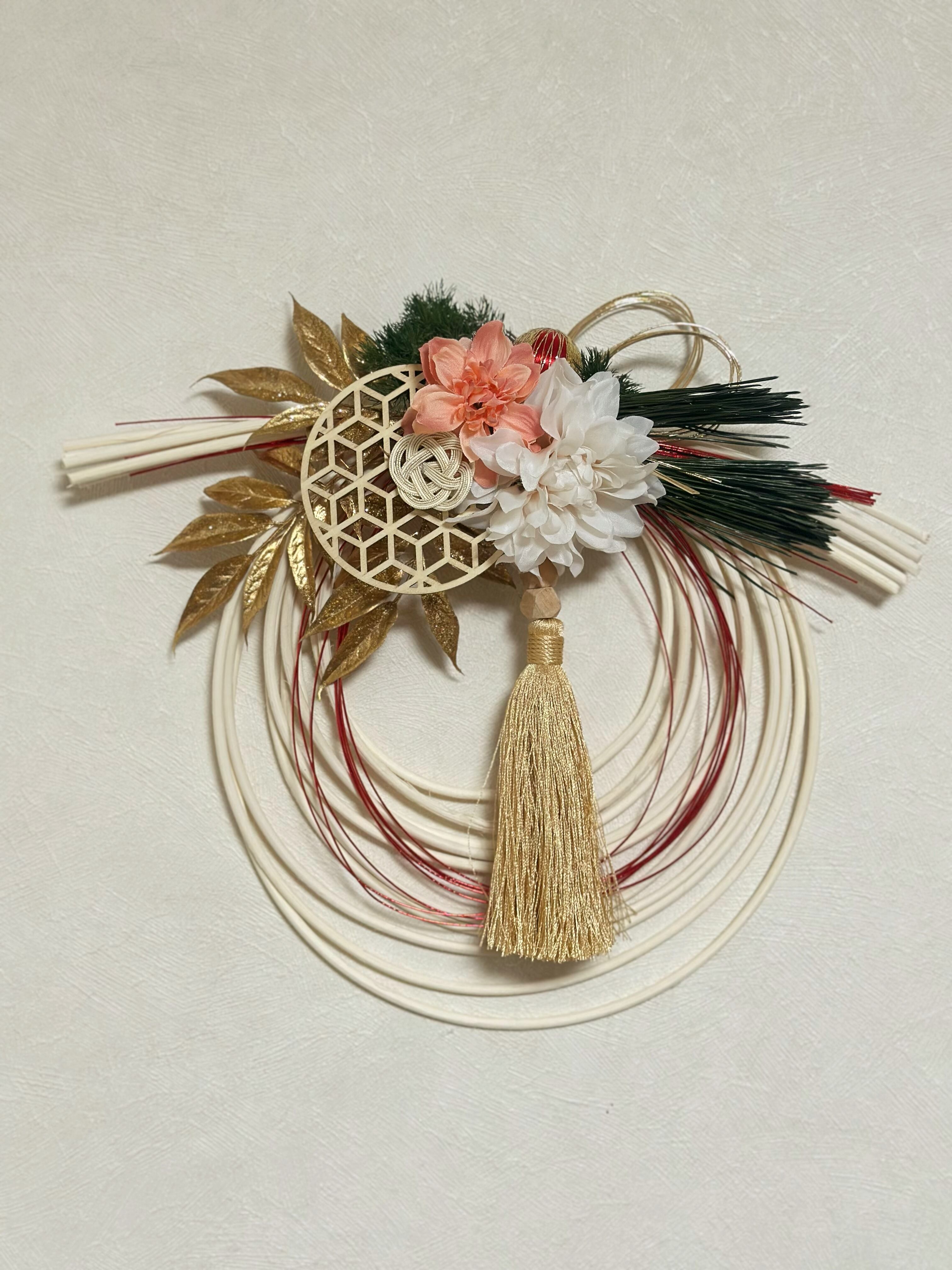 落ち着いた色味でモダンな雰囲気のしめ飾りです。