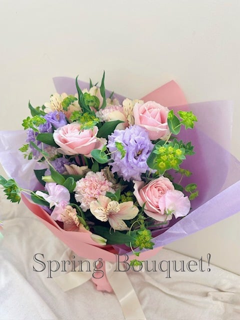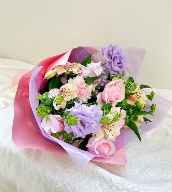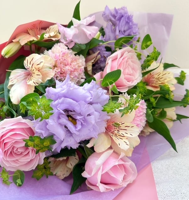 【卒業・送別お祝いブーケ】              ピンク・紫系おまかせ花束