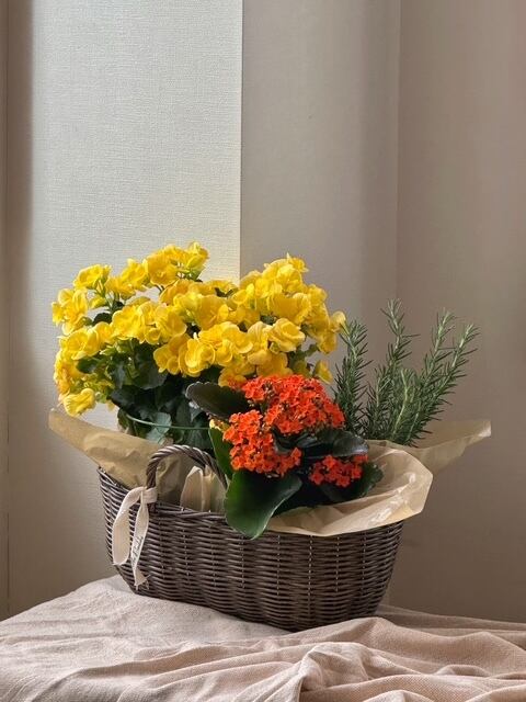 鮮やかな花々と香るハーブを詰めた、五感で楽しめる寄せ鉢ギフトです。